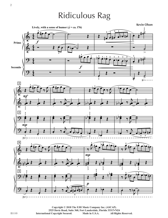 儘管在節奏上具有一定挑戰性,但實際上並不難彈——它的指法安排非常順手(Idiomatic),手位移動流暢,而且不需要太大的手幅(不需要撐開大指距)。不過,由於在合奏(Ensemble)的默契要求上具有一定難度,這首曲子將非常吸引那些熱愛挑戰、具冒險精神的青少年學生。
